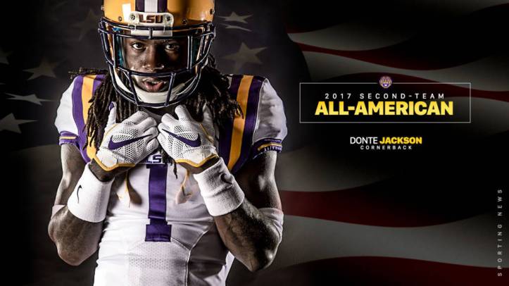 December 13, 2017December 13, 2017 LSU Football Report Jackson Named All-American by Sporting News For the second time in as many days, LSU had a defensive back earn All-America honors as junior Donte Jackson has been named second team All-America by Sporting News. Share this: Click to share on Facebook (Opens in new window) Facebook Click to share on LinkedIn (Opens in new window) LinkedIn Click to share on X (Opens in new window) X More Click to email a link to a friend (Opens in new window) Email Click to print (Opens in new window) Print Click to share on Reddit (Opens in new window) Reddit Click to share on Tumblr (Opens in new window) Tumblr Click to share on Pinterest (Opens in new window) Pinterest Click to share on Pocket (Opens in new window) Pocket Click to share on Telegram (Opens in new window) Telegram Click to share on WhatsApp (Opens in new window) WhatsApp Like Loading... Related