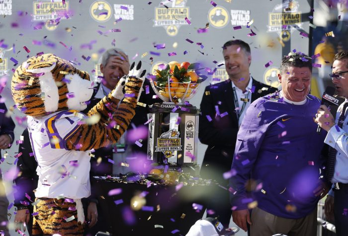 December 17, 2017December 14, 2017 LSU Football Report LSU set for first back-to-back games in same bowl since Paul Dietzel’s tenure The same bowl back-to-back for LSU? If it feels like that hasn’t happened for a really long time for Tigers fans, there’s a good reason for that. Share this: Click to share on Facebook (Opens in new window) Facebook Click to share on LinkedIn (Opens in new window) LinkedIn Click to share on X (Opens in new window) X More Click to email a link to a friend (Opens in new window) Email Click to print (Opens in new window) Print Click to share on Reddit (Opens in new window) Reddit Click to share on Tumblr (Opens in new window) Tumblr Click to share on Pinterest (Opens in new window) Pinterest Click to share on Pocket (Opens in new window) Pocket Click to share on Telegram (Opens in new window) Telegram Click to share on WhatsApp (Opens in new window) WhatsApp Like Loading... Related