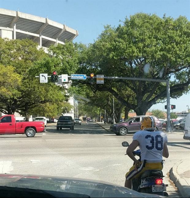 March 23, 2018March 23, 2018 LSU Football Report Josh Growden Drives His Scooter To LSU’s Scrimmage In Full Pads & Helmet Have you ever wondered what LSU Australian punter Josh Growden looks like when he’s heading to practice (scrimmage) on his scooter in full pads with a helmet on? Click here for more. #GeauxTigers Share this: Click to share on Facebook (Opens in new window) Facebook Click to share on LinkedIn (Opens in new window) LinkedIn Click to share on X (Opens in new window) X More Click to email a link to a friend (Opens in new window) Email Click to print (Opens in new window) Print Click to share on Reddit (Opens in new window) Reddit Click to share on Tumblr (Opens in new window) Tumblr Click to share on Pinterest (Opens in new window) Pinterest Click to share on Pocket (Opens in new window) Pocket Click to share on Telegram (Opens in new window) Telegram Click to share on WhatsApp (Opens in new window) WhatsApp Like Loading... Related