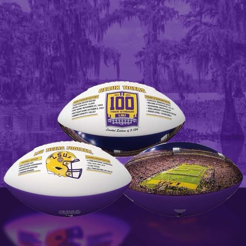 • This one-of-a-kind full sized football features all the LSU accolades in Tiger Stadium’s 100 years of existence that any fan would want. Every ball is a testament to LSU’s dominance around the NCAA as one of the most successful programs in college football history.